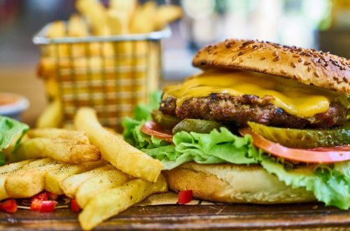 Бургер диетический с говядиной 430 ₽Состав: Листья салата, котлета из мраморной говядины 0,150, томаты, огурцы маринованные, бекон, чеддер.В корзину